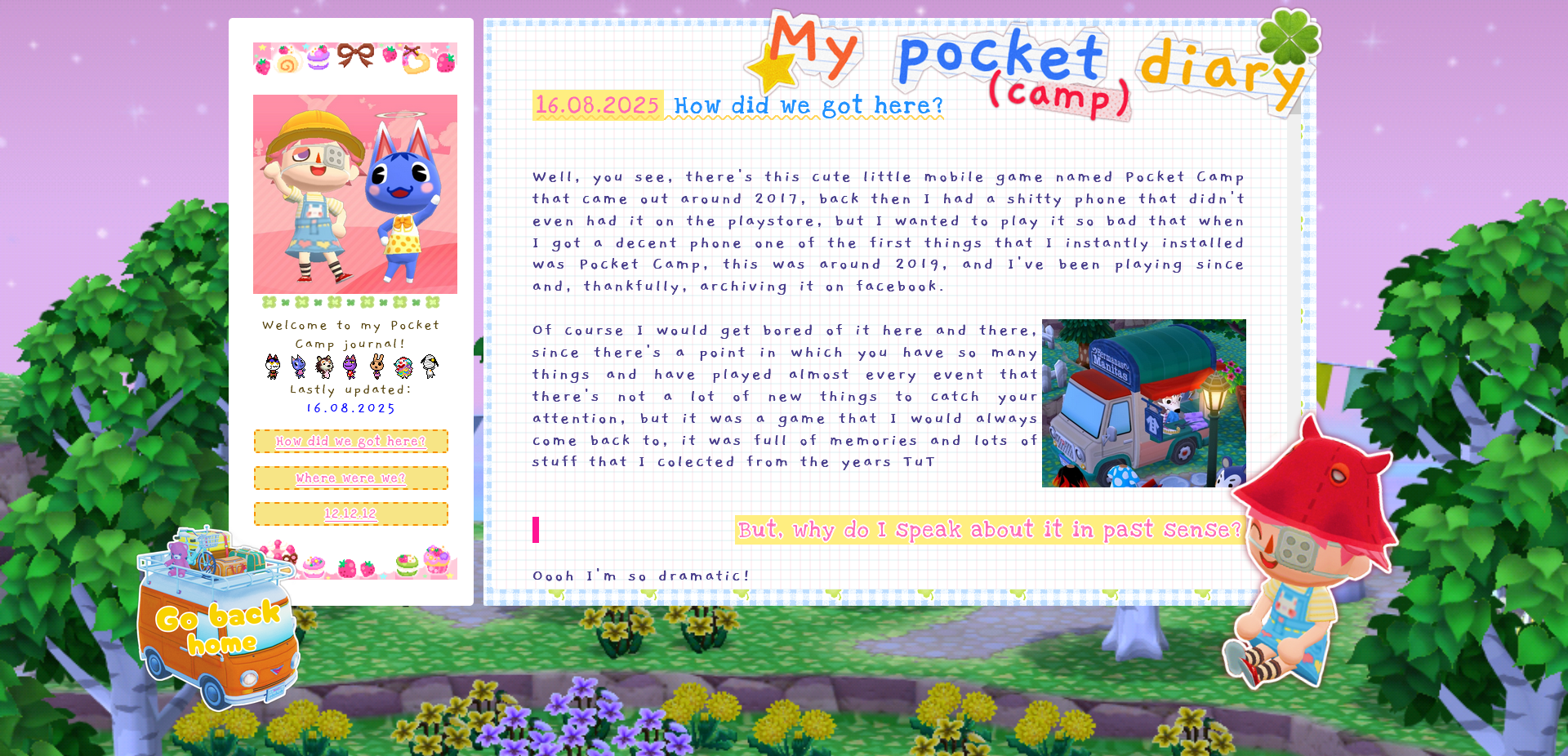 05/12/25Been working a lot on the page the last few days, mostly because my sleeping schedule has been all over the place again and I have art block so I wanted to put my mind onto something else and dang x__X the pages I have put up are not super complex or nothing too crazy but I legit though I was going to take forever to have them done and I managed to have them done through the week! YATTAAAAA!